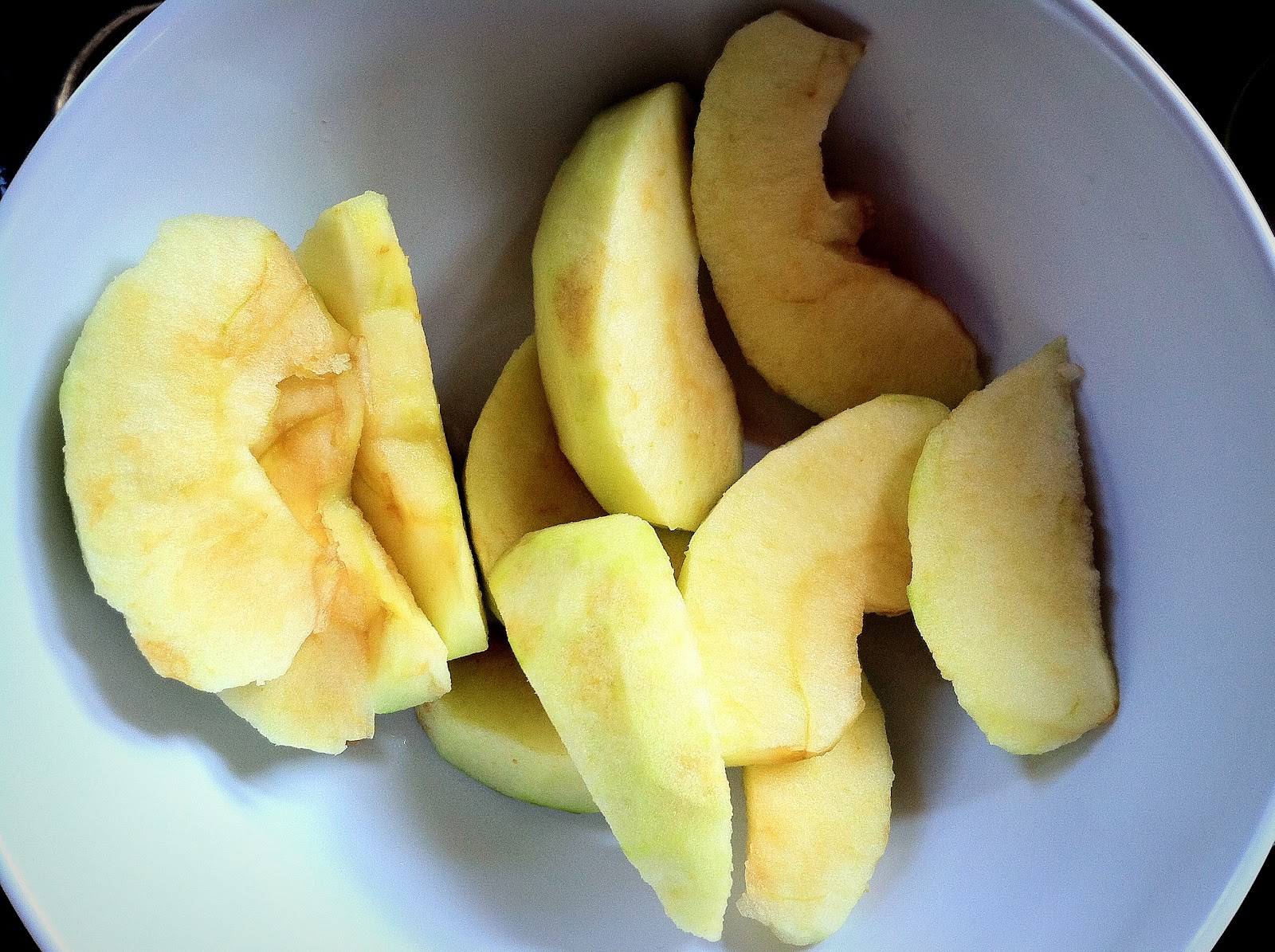In a bowl, combine the apples, flour, and cinnamon and mix it all up so that each apple slice is evenly coated with flour and cinnamon. If you love cinnamon like me you may sneak a few more sprinkles. ;)